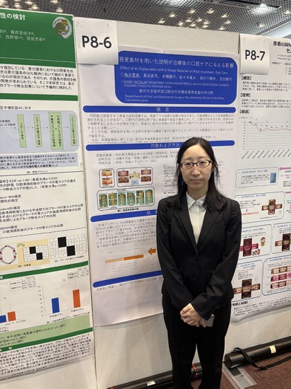 発表内容は、歯科治療を安全に行うための全身管理の重要性、口腔内細菌の動態と治療への影響、さらに保護者や障がい者施設職員を対象としたアンケート結果に基づく、今後の説明・支援体制の在り方に関するものでした。これらの成果は、障がいをもつ患者さんの理解と信頼に基づいた歯科医療を実現するための貴重な一歩となりました。